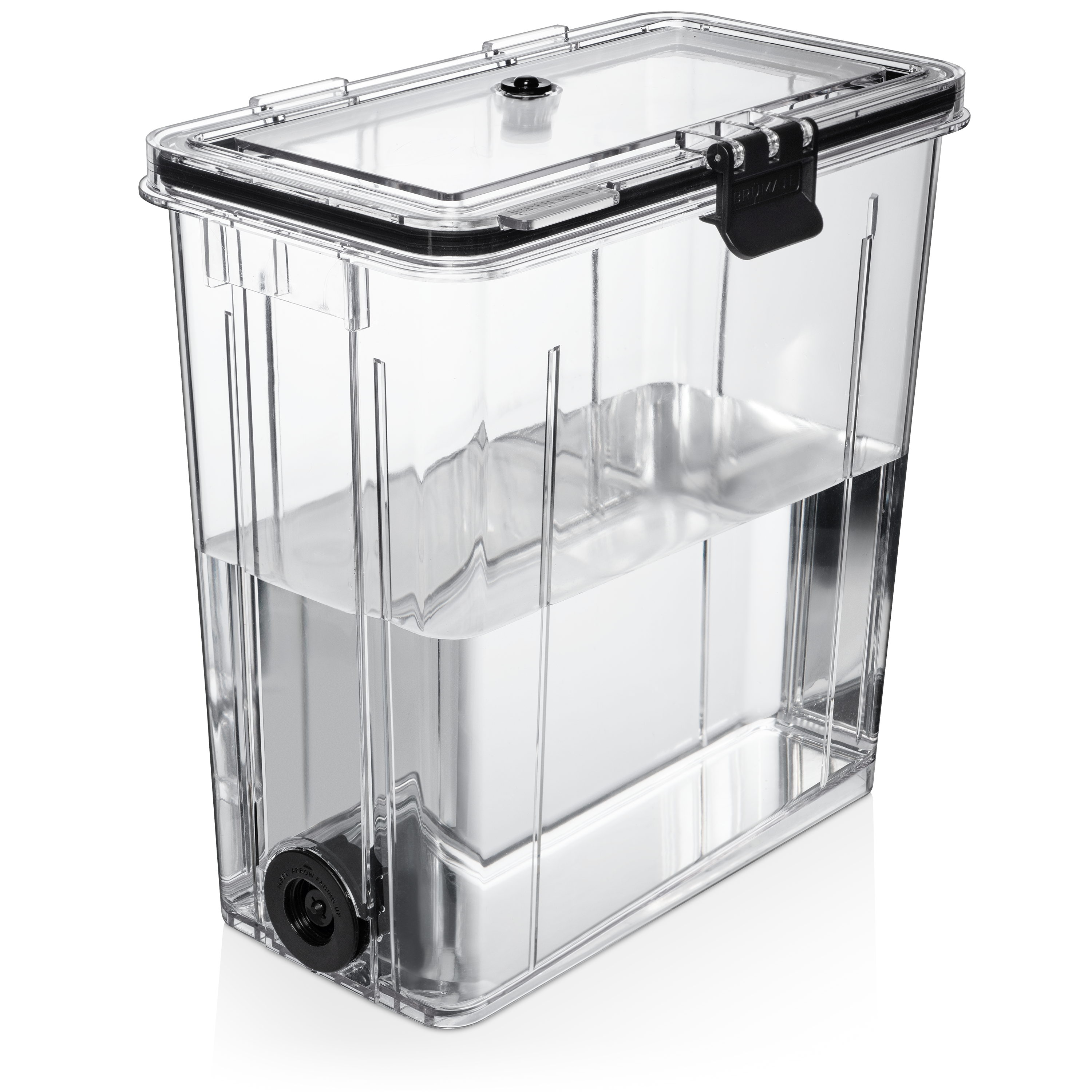 Our new patent-pending self-tapping tank is now available. This tank seals itself, which means you can make your drinks outside of the cooler and drop it in or remove the tank from the cooler with your leftover drinks without ever wasting a drop. Simply drop it in and thread on the spout from the outside to activate. When you're ready to remove the tank to save your leftover drinks or clean it, just unscrew the tap and pull it out. Fits all the 55qt BrüTank and includes the tank, lid, and tap system.